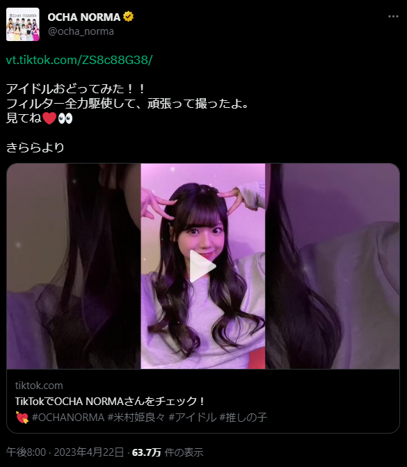 OCHA NORMA斉藤円香さん、X(旧Twitter)で万バズw