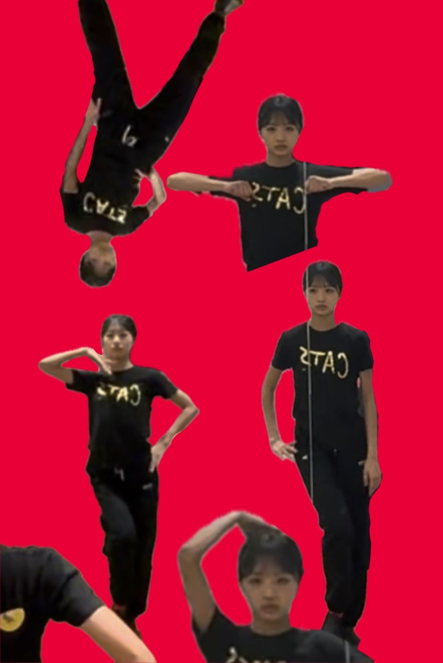 んでその動画に写ってた鏡越しの踊ってる私をスクショして切り抜いたのを集めたのがこれです。緊張してたけど気持ちだけは強く入れるように気合い入れてキャッツのTシャツ着てきました🐱