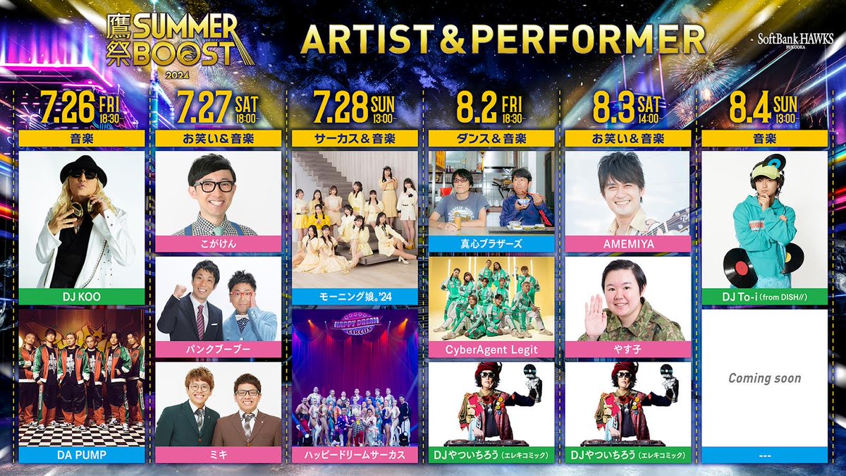\音楽・お笑い・DJなど日替わりのテーマとゲストがついに解禁🌟 初日7/26(金) #DJKOO さんの試合前パフォーマンスを皮切りに6日間多彩なエンタメを楽しめます🙌