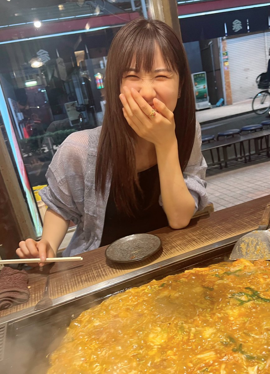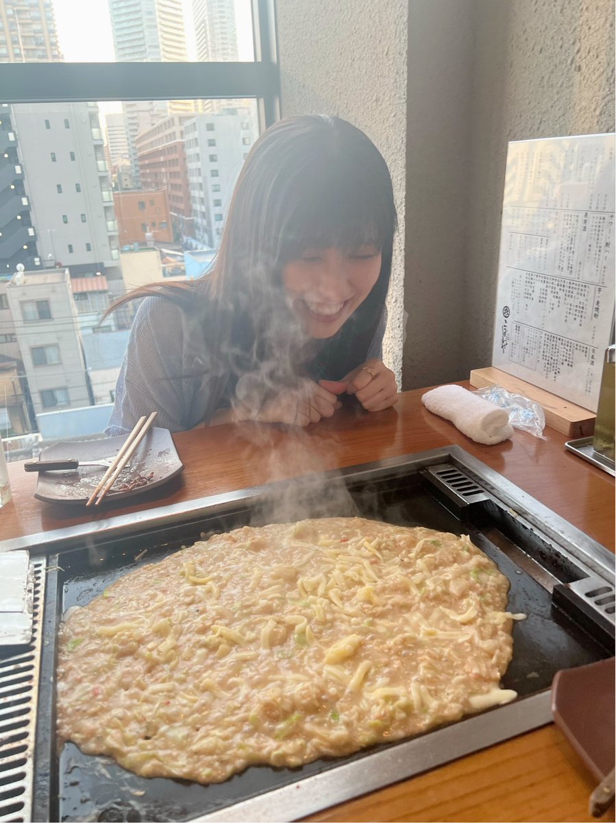 もんじゃ食べてデザート求めて30分歩いた後『まー、もんじゃもう1回食べたいです!』って。笑