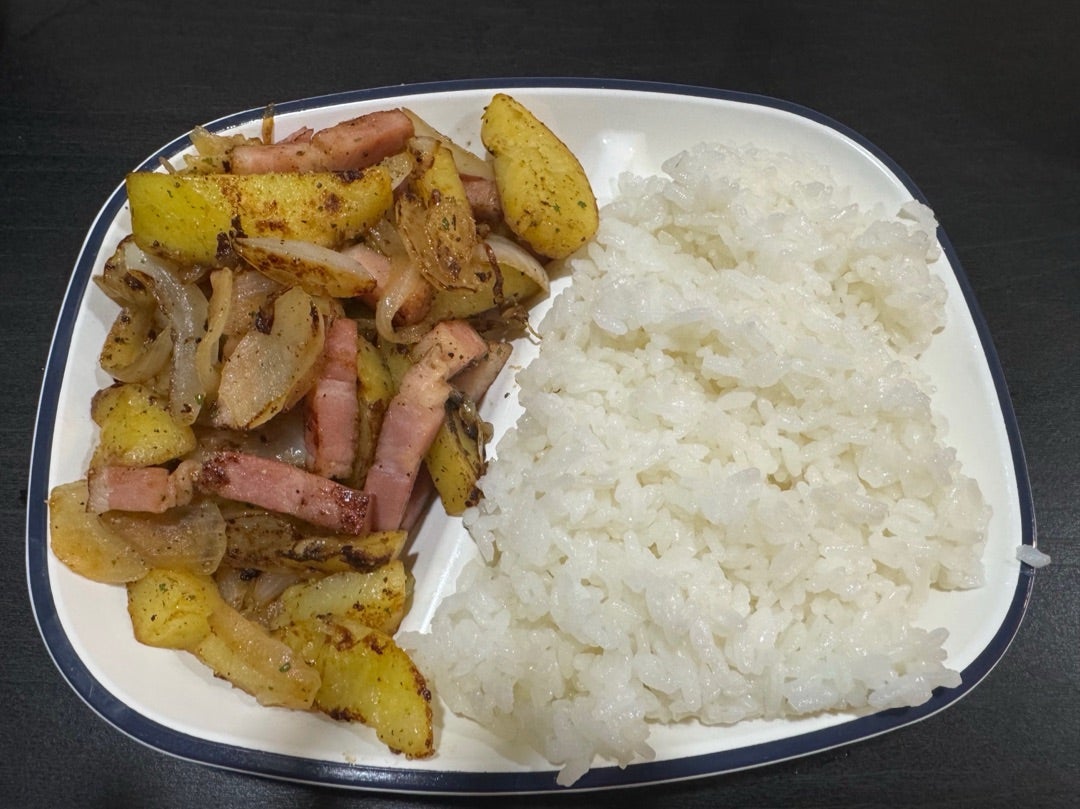 井上はるさん「今日の晩御飯。つくってみました。なんて料理かは分からん。」