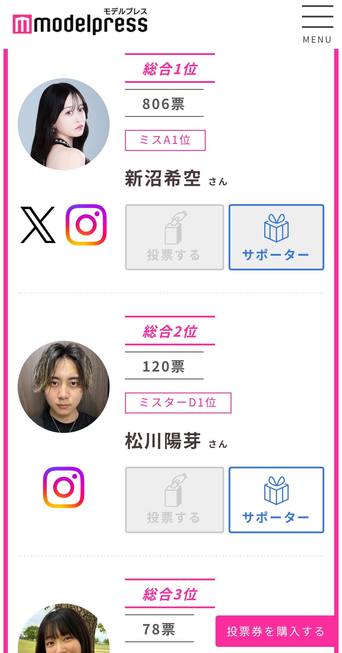元つばきファクトリー新沼希空さん、モデルプレス特別表紙出演権オーディション投票初日ぶっちぎりの総合1位キタ━━━━(゚∀゚)━━━━!!