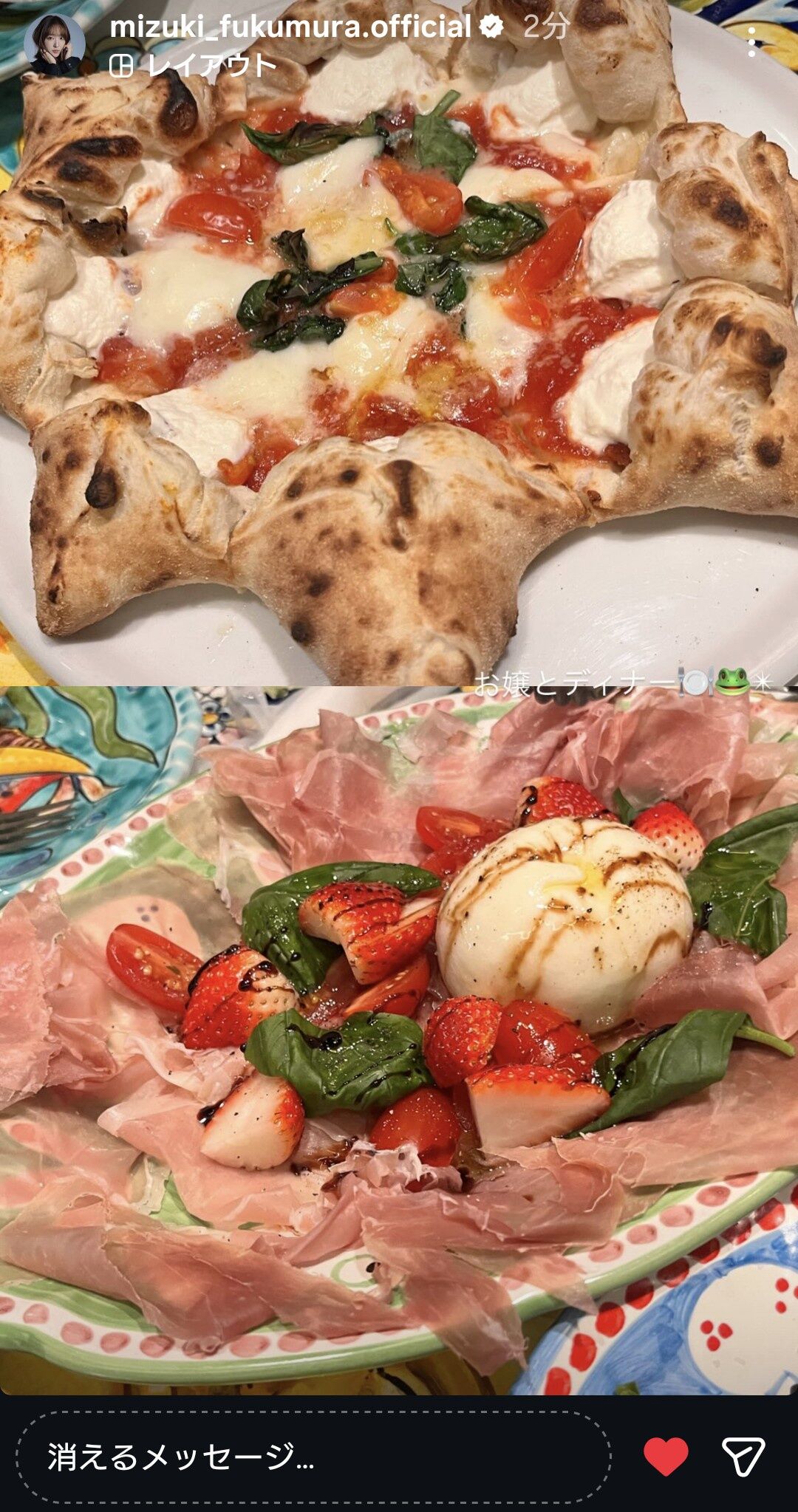 譜久村聖ちゃんが親友の山木梨沙ちゃんと、ナポリスタカ神谷町でピザ(6600円)ディナー🍕
