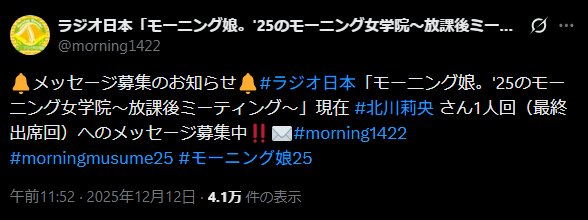 #ラジオ日本「モーニング娘。’25のモーニング女学院~放課後ミーティング~」